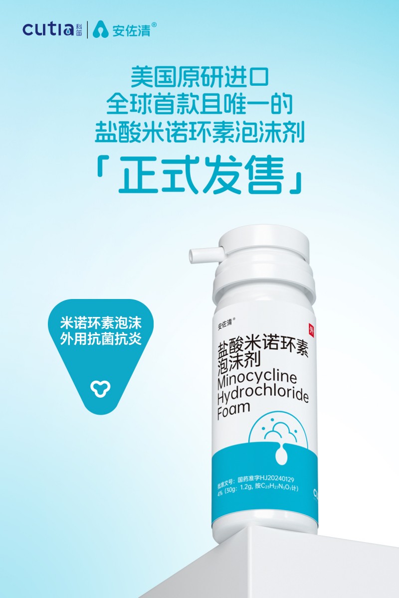 4%盐酸米诺环素泡沫剂(安佐清®)在中国的商业上市,为深受痤疮问题困扰的群体提供了科学创新治疗的新方案,同时是科笛集团在皮肤健康领域战略布局的里程碑事件。